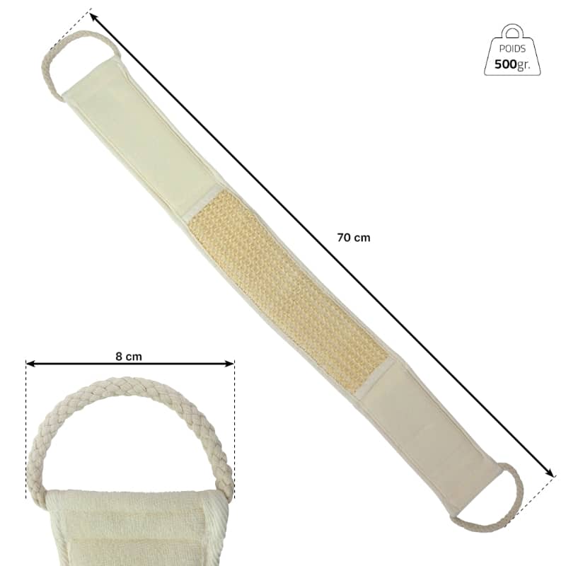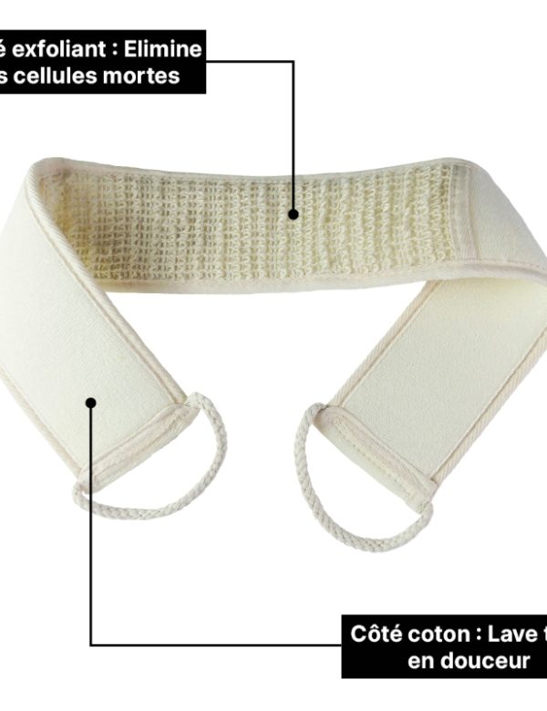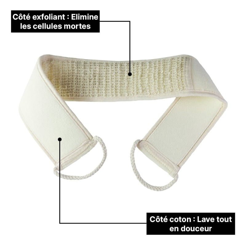 Notre bande exfoliante pour le dos a été spécialement conçue pour offrir un soin complet et agréable, tout en facilitant l’accès aux zones difficiles à atteindre. Elle est dotée de deux faces complémentaires qui répondent à différents besoins de la peau.