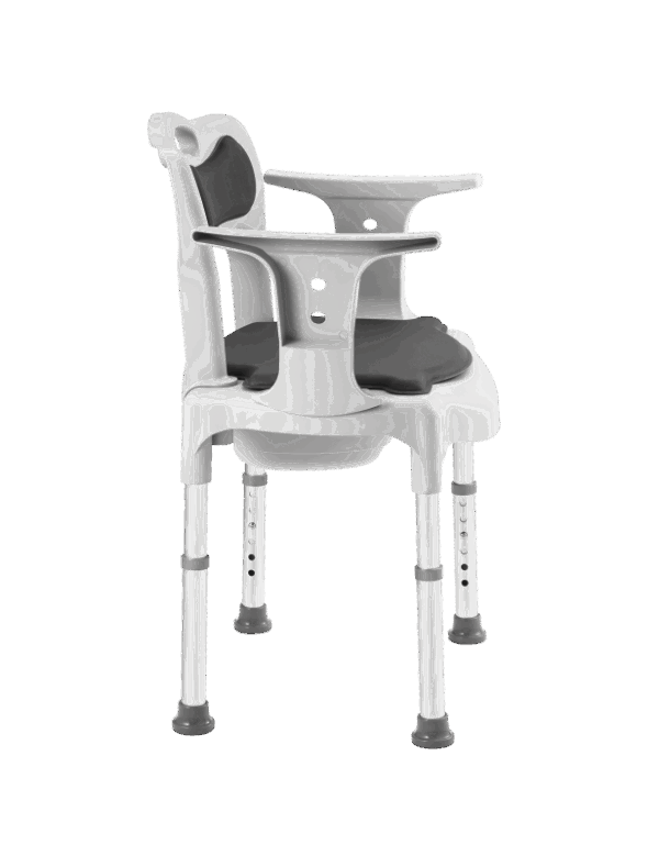 Sa conception polyvalente permet une utilisation en douche, en garde-robe ou en surélévateur de toilettes.