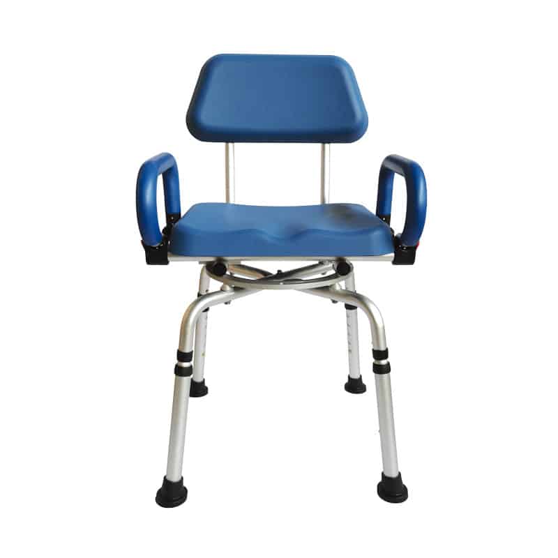 Le fauteuil pivotant facilite l’accès à la robinetterie tout en offrant une assise confortable et sécurisée. Sa fonction pivotante permet de se positionner sans effort, en toute autonomie.