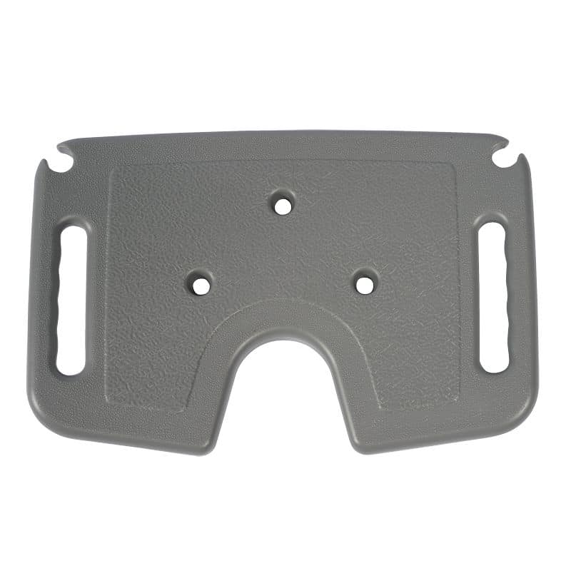 Assise large avec découpe anatomique à l’avant, revêtement antidérapant et perforations pour l’évacuation de l’eau.