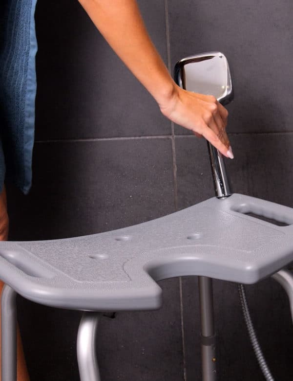 Hauteur réglable en 8 positions afin de s’ajuster à votre morphologie et à votre espace douche.