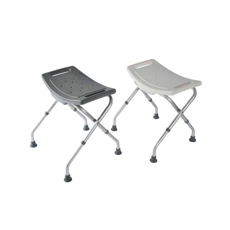 Tabouret pliant Bora, réglable en 3 hauteurs, conçu pour se doucher assis en toute sécurité et réduire la fatigue. Idéal pour les personnes âgées, à mobilité réduite ou en convalescence.