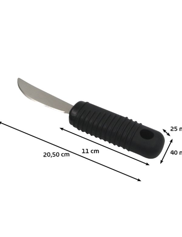 Son manche en caoutchouc moulé, naturellement antidérapant, assure une excellente tenue, même en cas de faiblesse musculaire ou de troubles de la motricité. Sa lame en inox épais est ajustable, permettant d’adapter l’angle de coupe selon les besoins de l’utilisateur.