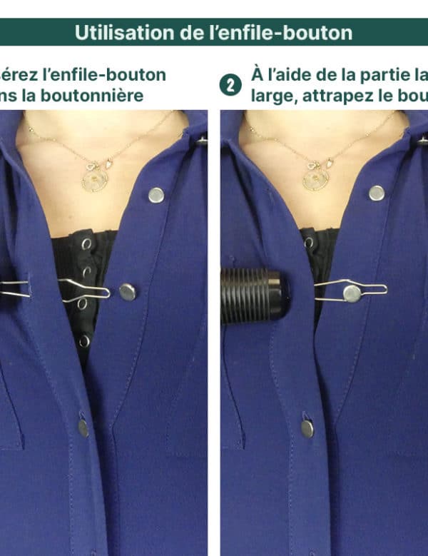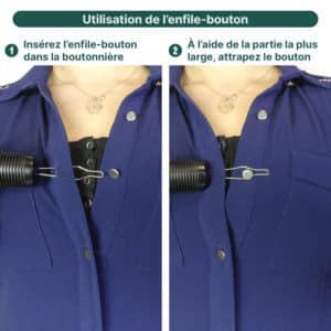 L’enfile-bouton est un outil pratique pour faciliter l’habillage au quotidien. Il permet d’accrocher rapidement les boutons de chemise ou de pantalon grâce à sa boucle spécialement conçue.