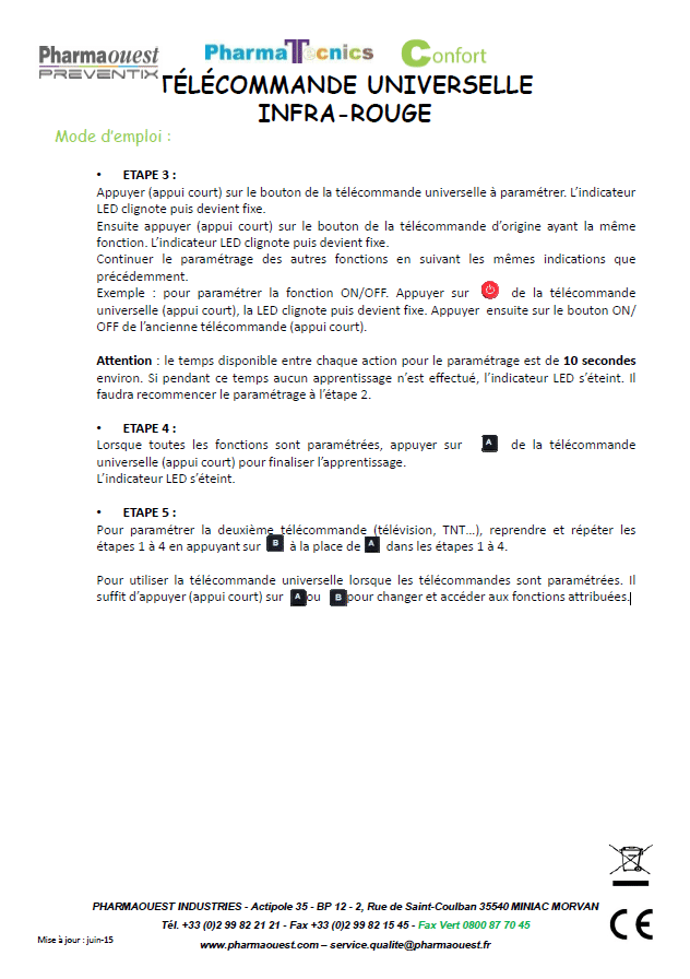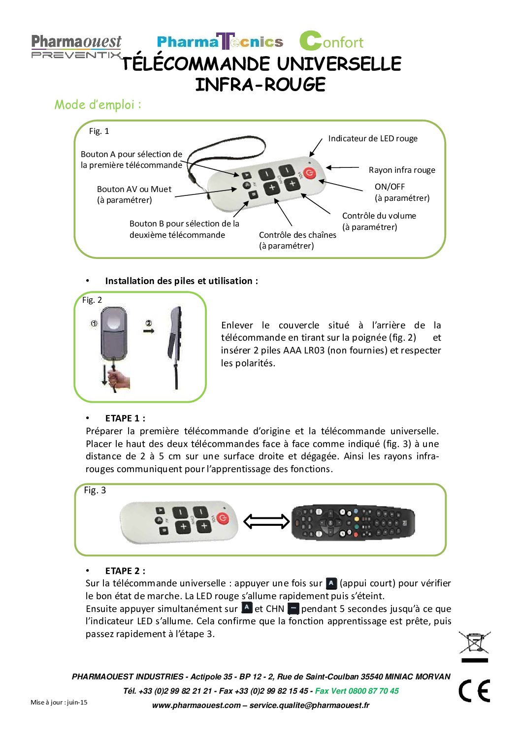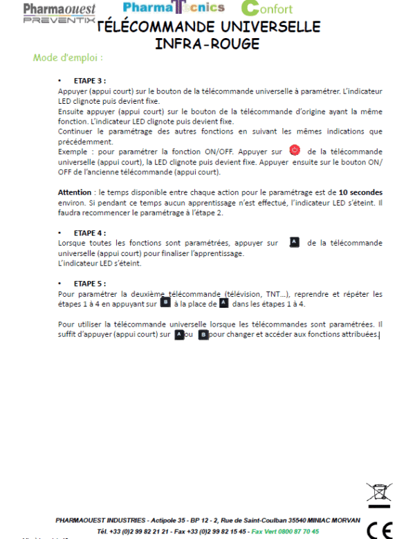 universelle (appui court), la LED clignote puis devient fixe. Appuyer ensuite sur le bouton ON/