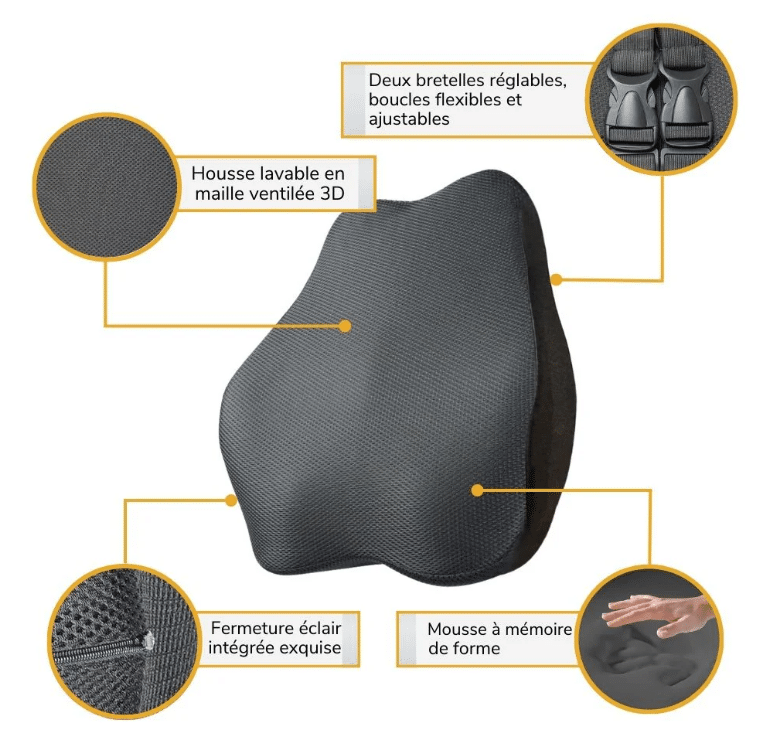 Doté d’une technologie rafraîchissante avec housse en maille 3D respirante, il limite la transpiration pour un confort durable. Les sangles réglables assurent une fixation stable sur la majorité des chaises, sièges de bureau ou de voiture, avec une longueur maximale de 130 cm. Idéal pour le travail, les voyages ou la maison.
