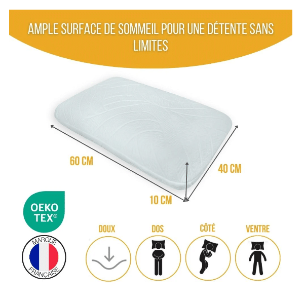 Oreiller ergonomique à mémoire de forme extra-souple pour un soutien doux de la tête et de la nuque