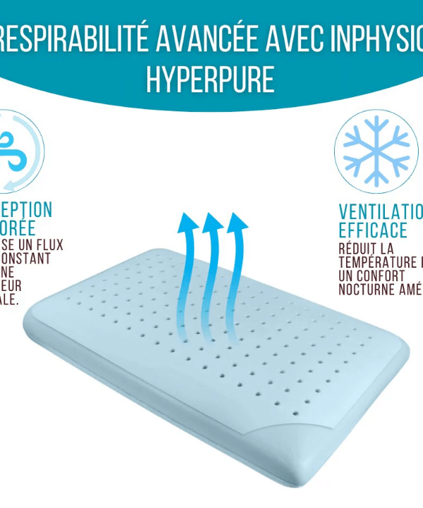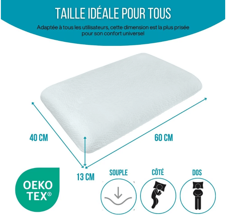 Sa mousse viscoélastique certifiée 100 % Oeko-Tex est rigoureusement testée pour garantir sécurité, durabilité et respect de la peau.