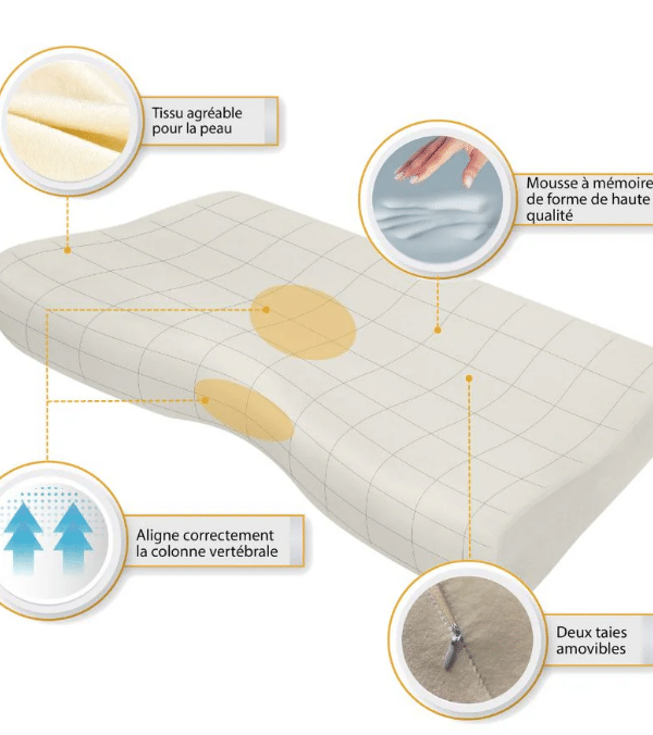 Grâce à sa mousse à mémoire de forme thermoélastique, l’oreiller s’adapte à la chaleur du corps et répartit les points de pression de manière homogène. Il permet ainsi de soulager efficacement les douleurs cervicales, de réduire les tensions musculaires et de prévenir les inconforts liés aux mauvaises postures nocturnes.