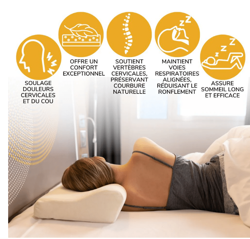 Adapté aux personnes dormant sur le dos ou sur le côté, cet oreiller aide également à maintenir les voies respiratoires dégagées, contribuant à la réduction des ronflements et à une meilleure qualité de respiration pendant le sommeil.