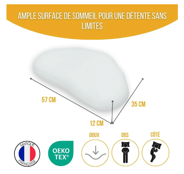Oreiller : mousse viscoélastique 100% polyuréthane
