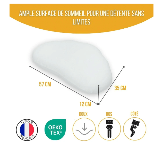 Oreiller : mousse viscoélastique 100% polyuréthane